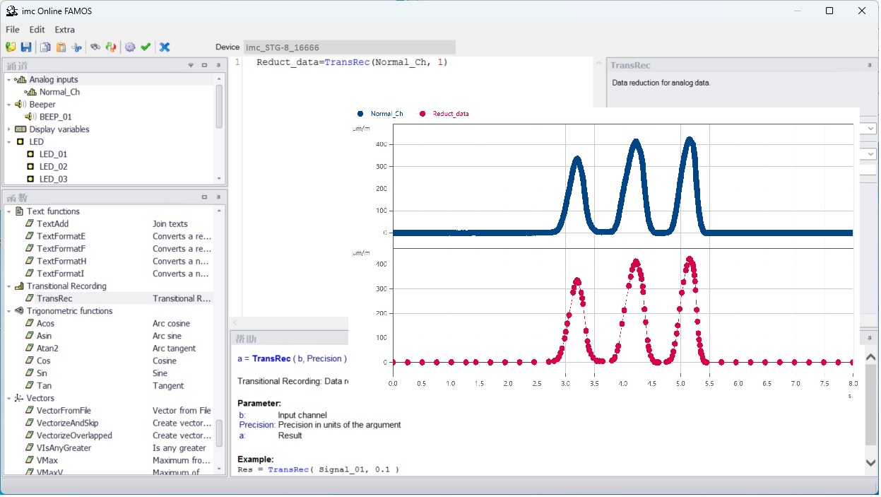 每个测量通道,都有自己的监控通道,方便设置信号采集的预触发条件。imc特色实时压缩记录,可根据信号变化快慢自动改变采样速度,变化小记录少,变化快记录密,有效缩减数据记录量,适合土木,外场等长期监控应用。
