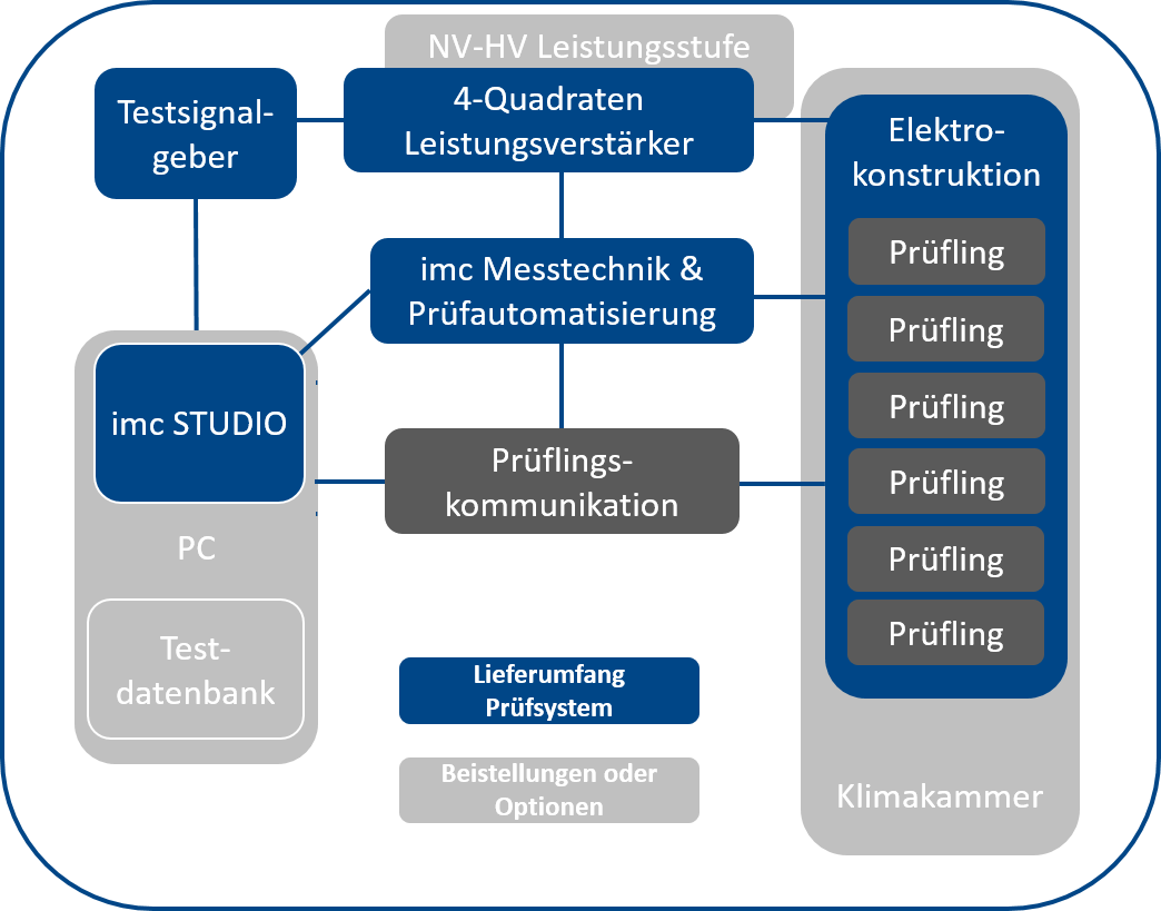 imc bietet schlüsselfertige Prüfautomaten zum Steuern der Prüfabläufe bzw. Prüfnormen. Das imc System bietet einen modularen Aufbau, Erweiterungsmöglichkeiten und den flexiblen Einsatz von verschiedenen Leistungsendstufen und Messtechnik. Vollautomatische Prüfabläufe auf Basis von Teilprüfungen mit flexiblen Prüfparametern steigern Ihre Produktivität und vermeiden Fehlbedienungen. Die direkte Ergebnisbildung (Prüfprotokoll) und eine strukturierte Datenablage erleichtern die Arbeit mit dem System. Die Auswertungen werden am Ende der Prüfung direkt zur Weitergabe an den Endkunden zur Verfügung gestellt.