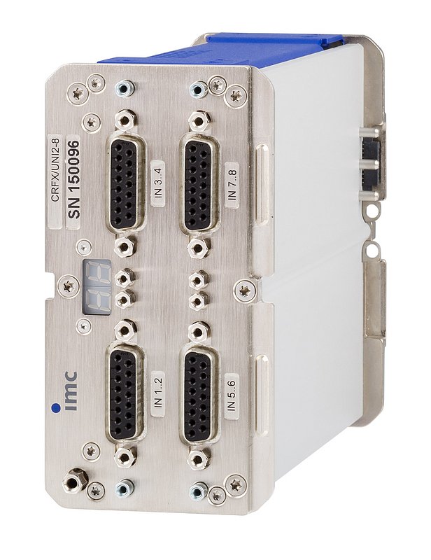 Al igual que todas las entradas del sistema de adquisición de datos imc, los módulos CRONOSflex de imc integran acondicionamiento de señal, filtrado analógico, digitalizadores de 24 bits de alta precisión y procesamiento digital de la señal. En este sentido, imc ofrece una gran variedad de módulos, desde el módulo universal de 8 canales UNI2-8 (CRFX/UNI2-8), hasta módulos de medición más específicos.