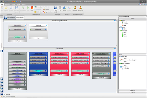 Como plataforma de software modular, imc STUDIO combina numerosas y potentes herramientas potentes en un entorno totalmente integrado. De esta manera, el usuario puede tanto realizar rápidamente mediciones simples, como crear configuraciones de prueba sofisticadas. Estas pueden incluir interfaces gráficas de usuario diseñadas individualmente, controlar secuencias de prueba automatizadas, integrar secuencias de análisis imc FAMOS e incluso implementar una automatización completa del banco de pruebas en tiempo real.