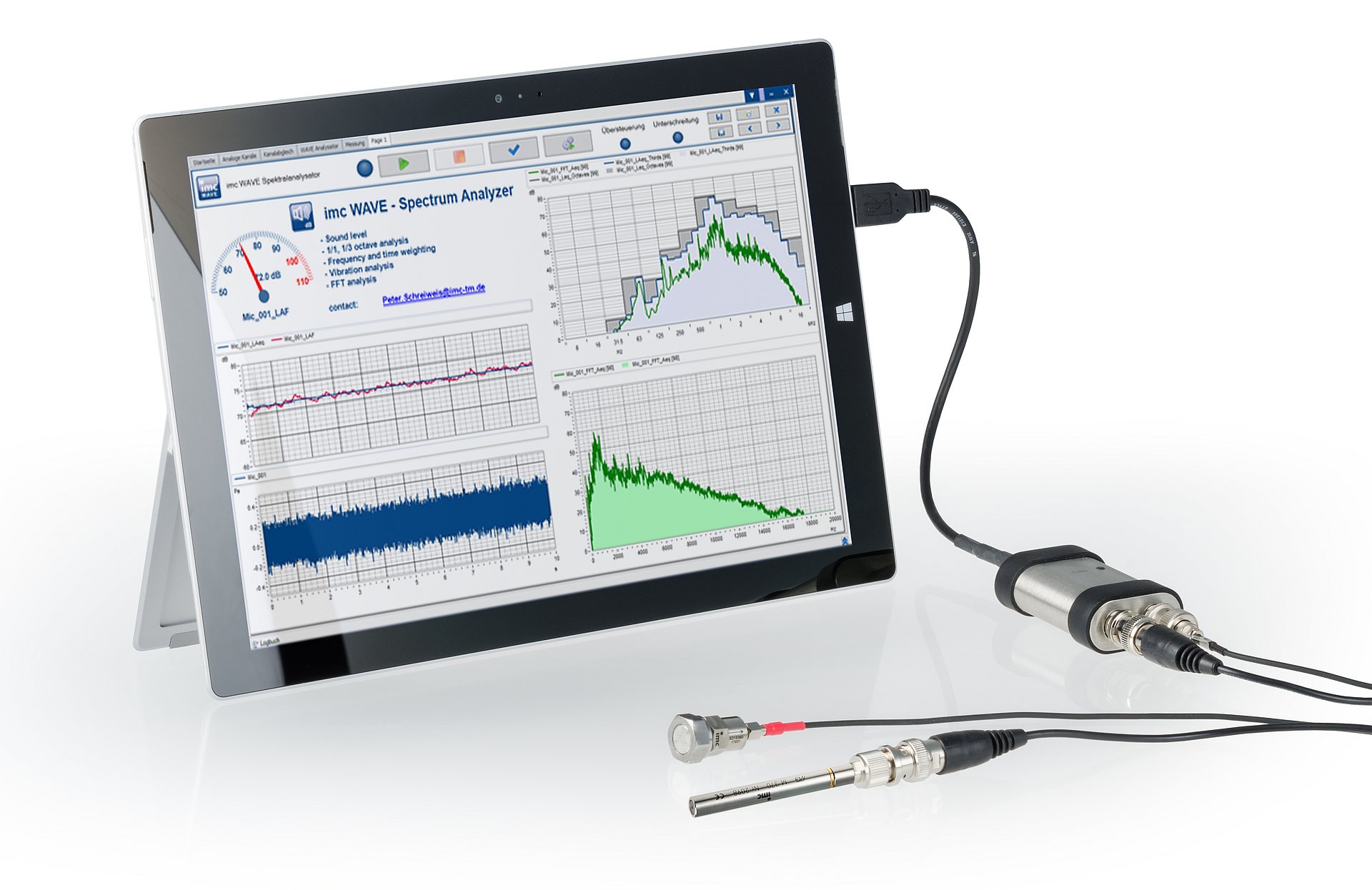 imc Test &Measurement GmbH presents the imc WAVE Starter Pack. The Starter Pack consists of imc WAVE measurement data software bundled together with a USB measurement amplifier and microphones or vibration sensors. As a result, technicians and engineers have a complete package that provides an inexpensive start to the analysis of noise and vibration, and to perform fundamental analyses.