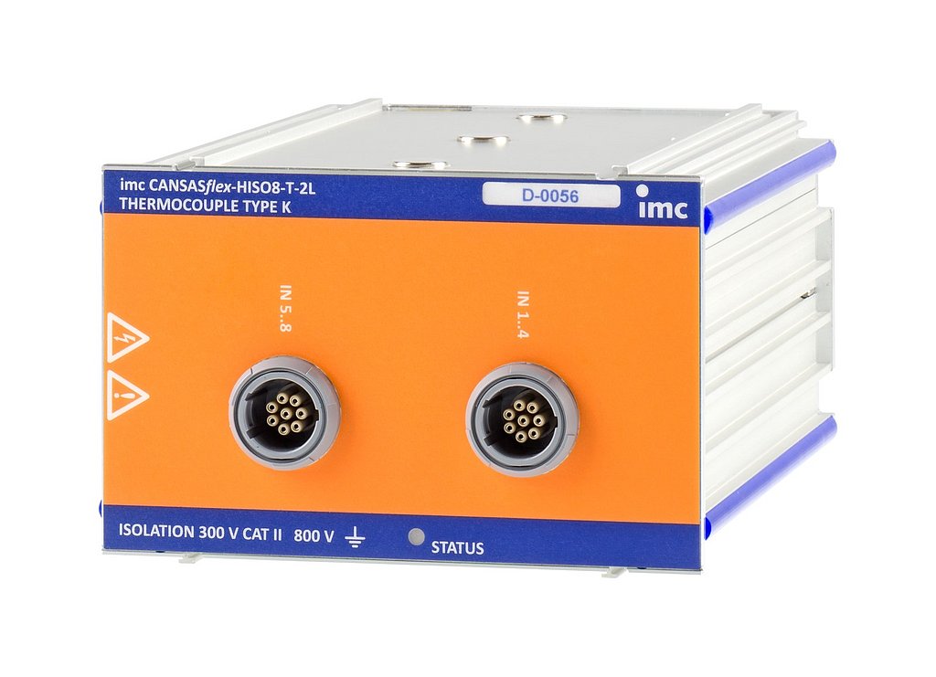The measurement module imc CANSASflex-HISO8-T allows safe and precise measurement with 8 thermocouples (type K) which are mounted on high-voltage components with common mode voltage levels of up to 800 V. It is particularly suited for applications in the field of E-Mobility.