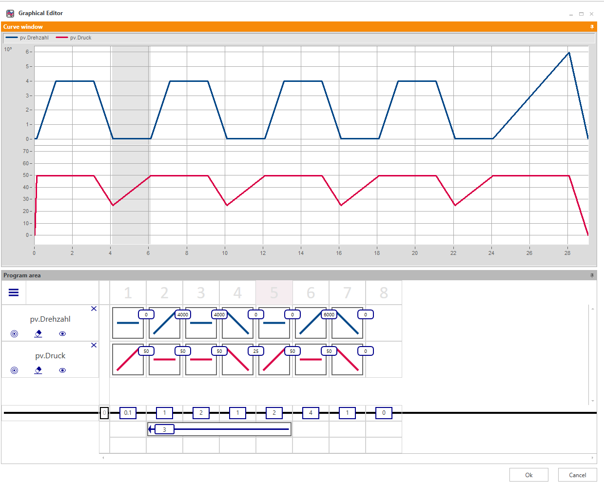 imc GrafiPEd allows simple and intuitive generation of set point curves and test procedures that can then be used to govern controllers, actuators, valves, etc.
