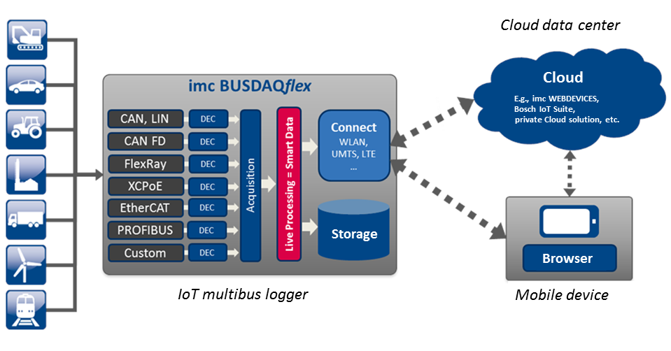 With intelligent and networked data loggers, the test and measurement specialists at imc offer a complete digitization solution for bringing systems, machines, vehicles and much more to the Internet of Things. Combined with the imc Cloud solution, users today already have powerful tools at their disposal to make existing machines and systems fit for IoT and to increase added value.
