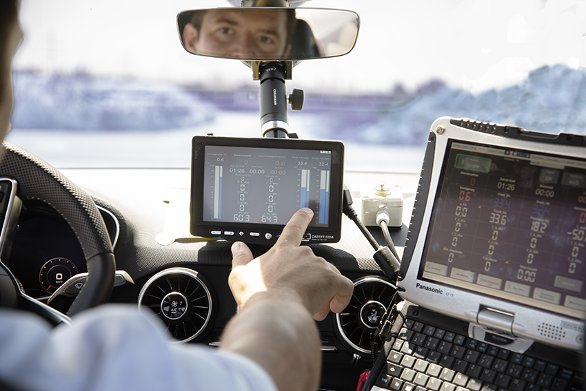 One of the most important parameters of brake tests is brake disc temperature. With Dx-BrakeTemp users have at their disposal a turnkey wheel telemetry system that acquires up to four temperatures directly on the wheel of the vehicle, digitizes the information and transfers it to a receiver inside the vehicle. Due to its robust design, the system has also been designed to withstand harsh environments and all kinds of weather in road tests.