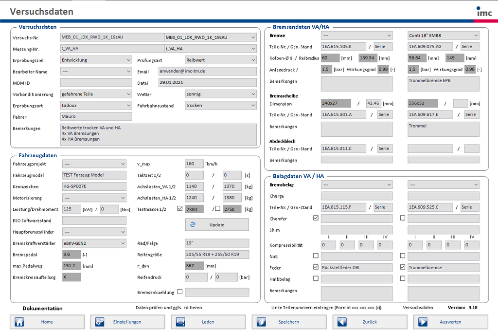 Data acquisition with the imc BRAKEApp, imc Data Acquisition System and imc Sensors