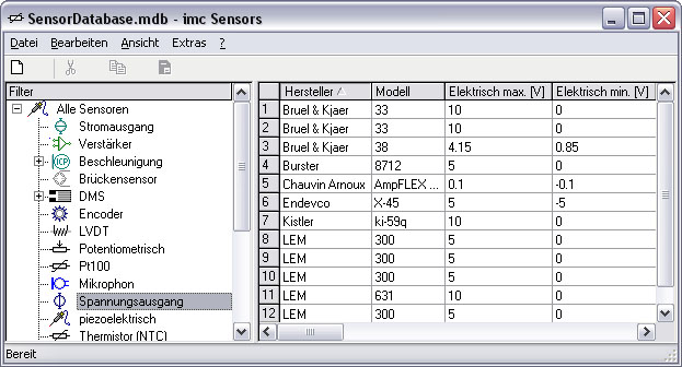 imc SENSORS 軟體是一款即開即用的感測器資訊管理與編輯的通用型資料庫軟體。除了符合IEEE P 1451.4 (TEDS)標準的智慧感測器的定義值,用戶還可以挑選額外的感測器資訊,同樣可以自由輸入。通過自由設置的表格視圖,所有這些均可以被設定、編輯和查看,例如:感測器的技術資訊和校準值。